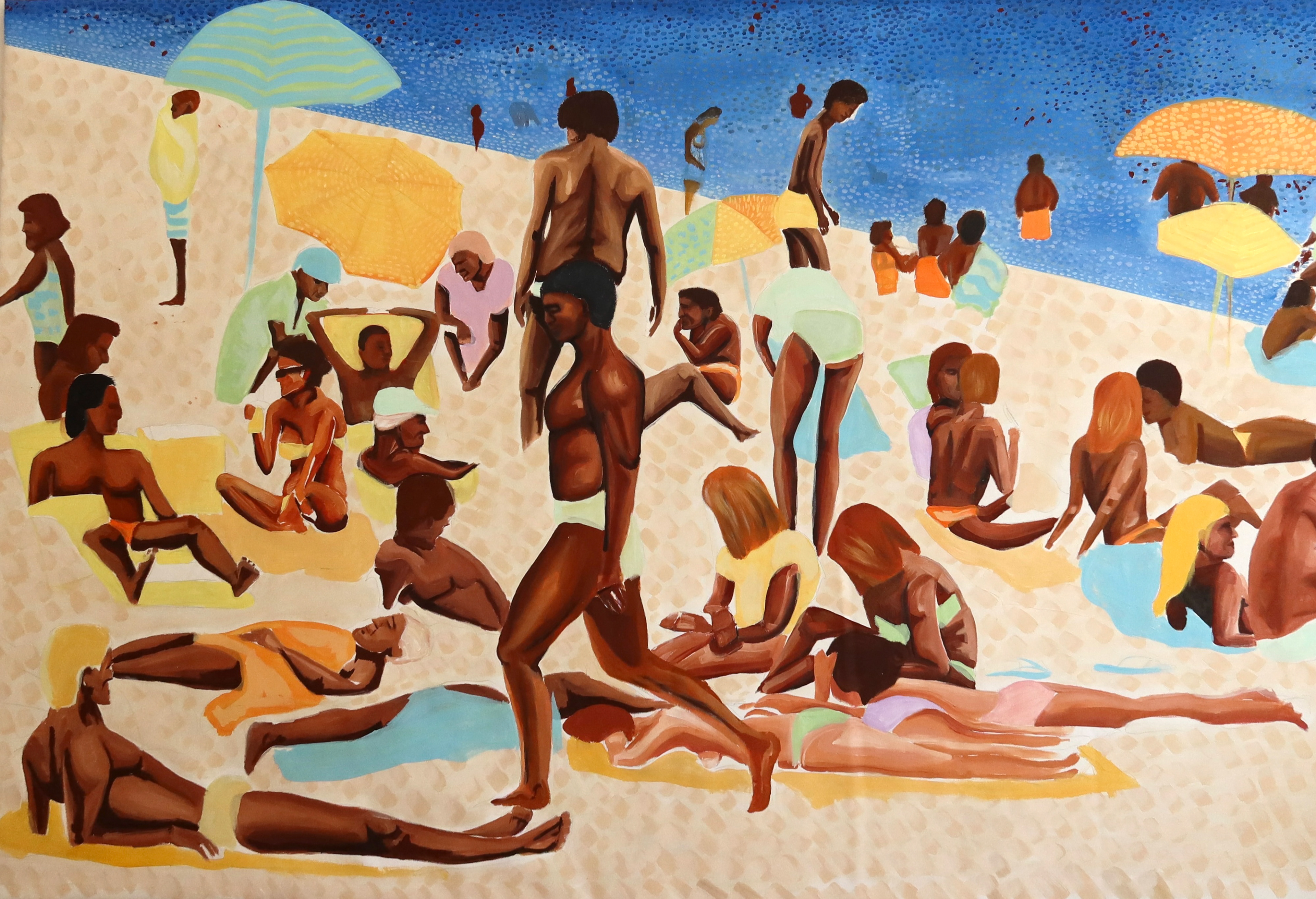 Repeated bodies under the sun reveal the social performance on Brazilian beaches. A subtle critique of aesthetic standards and collective belonging.