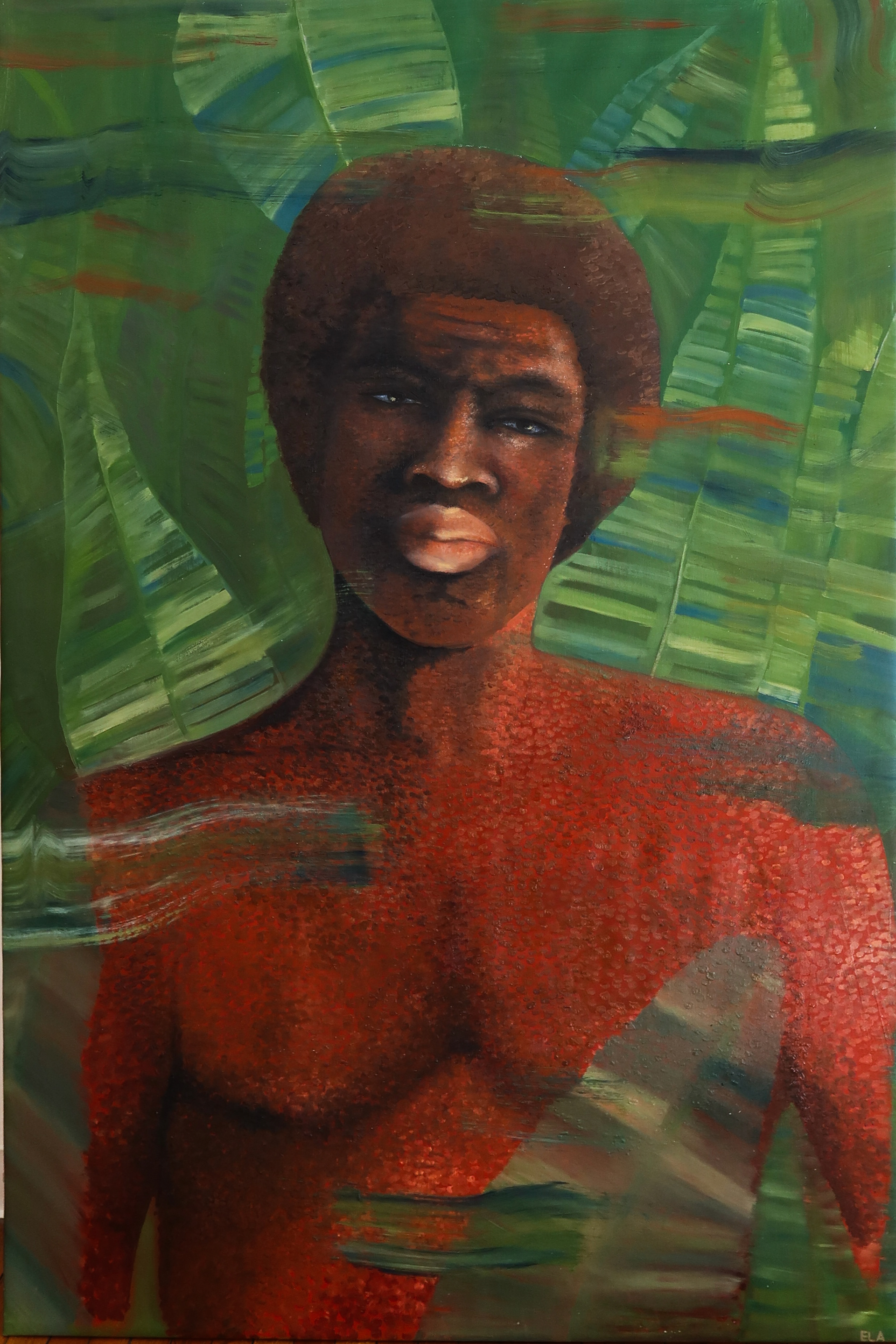 A body that merges with the forest. An Afro-Brazilian representation affirming the connection between body, nature, and ancestry.